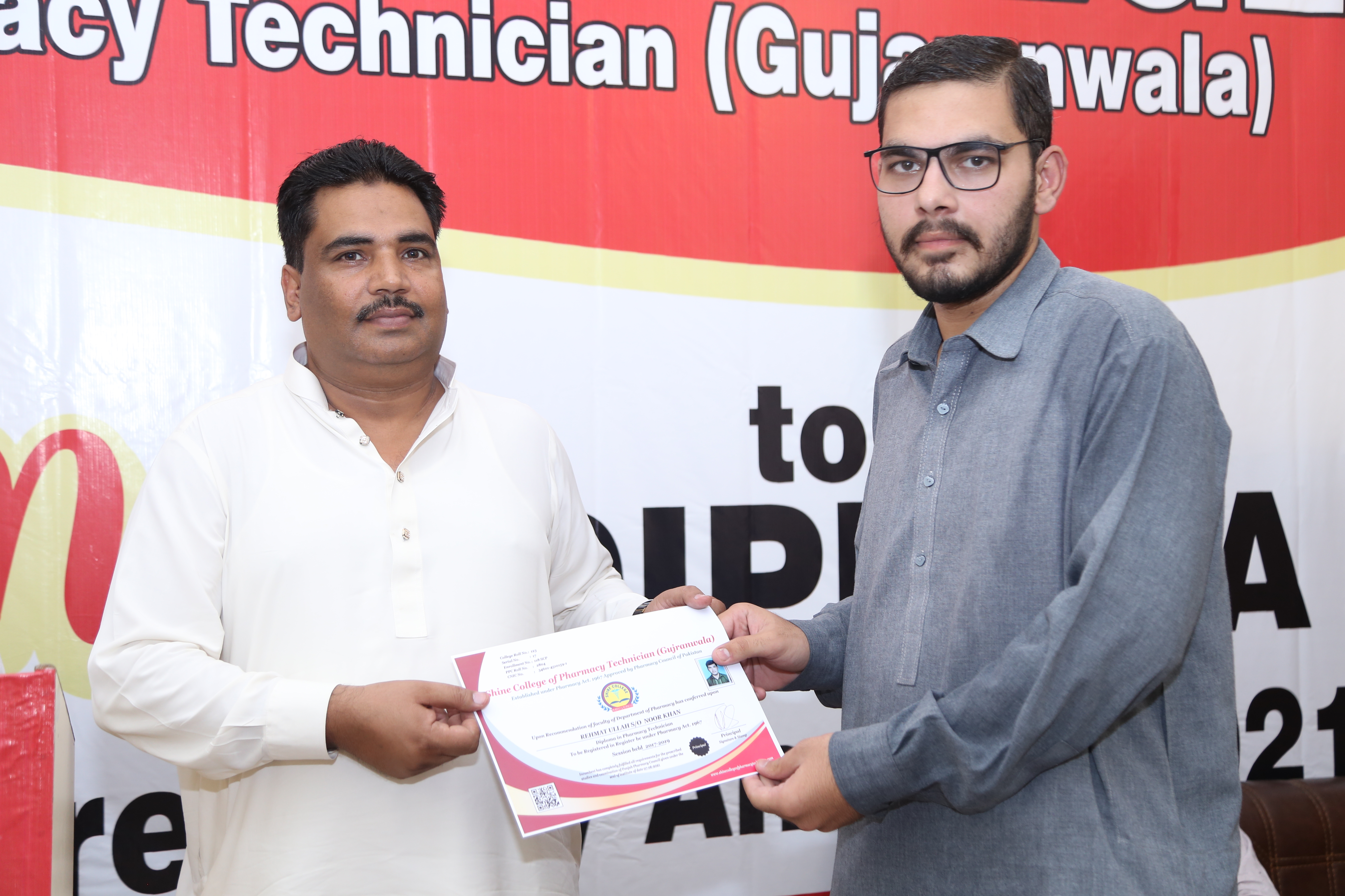 Shine college of pharmacy technician Gujranwala organizes a Diploma Distribution ceremony annually